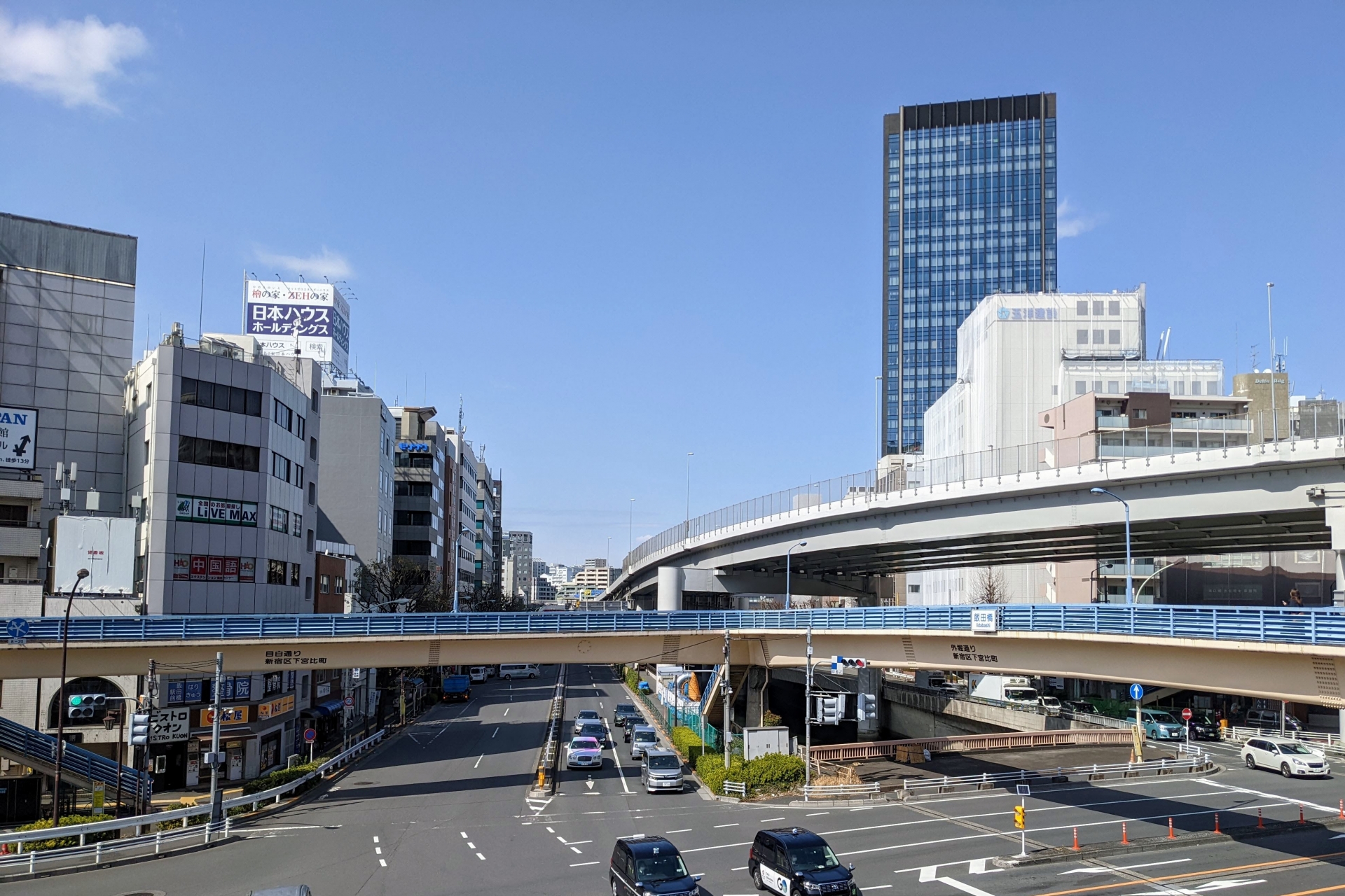 飯田橋交差点の周辺には、オフィスビル、商業施設、飲食店が集まり、ビジネスパーソンや学生、観光客で賑わっています。近隣には、神楽坂の風情ある街並みや、後楽園、東京ドームといった観光スポットもあります。飯田橋交差点は交通量が多く、歩行者も多いため、にぎやかなエリアとなっています。